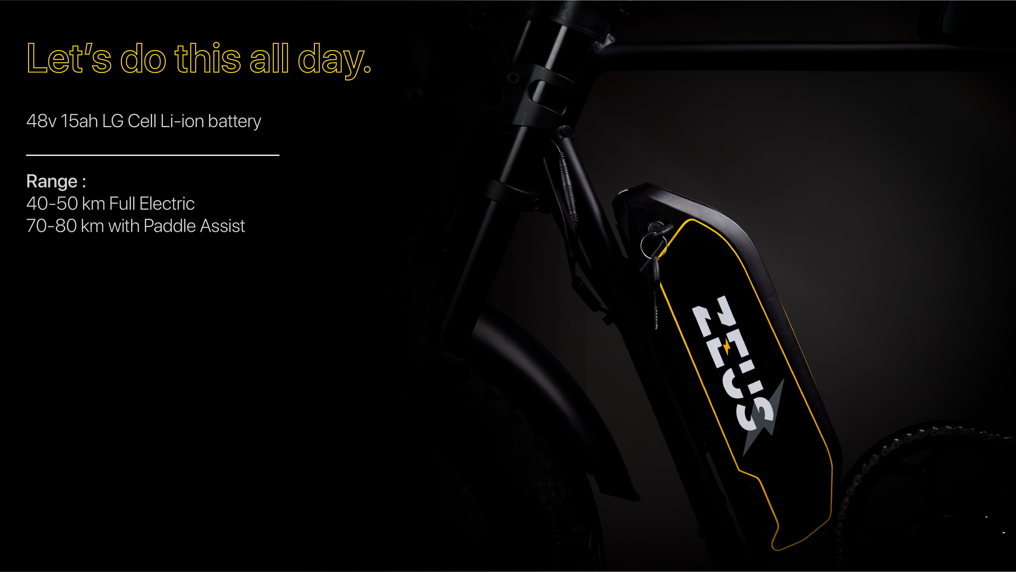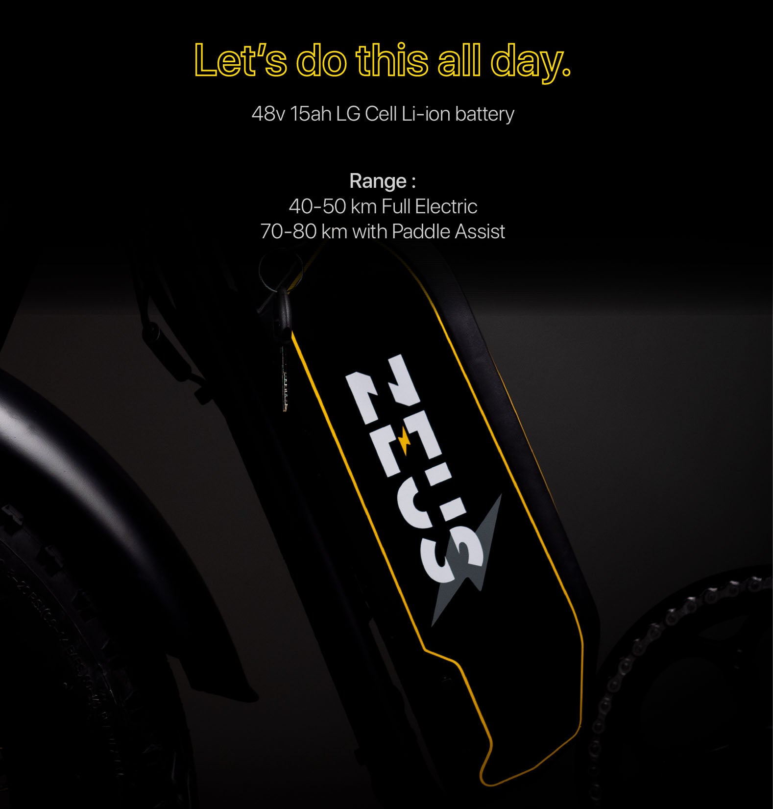 Range: 40-50KM FULL ELECTRIC / 70-80KM WITH PADLE ASSISTED