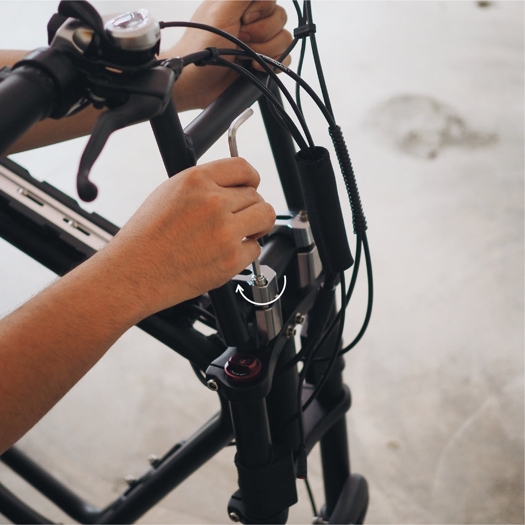 Loosely tighten the handlebar clamp, and adjust the angle of the handlebar to riders comfort.
