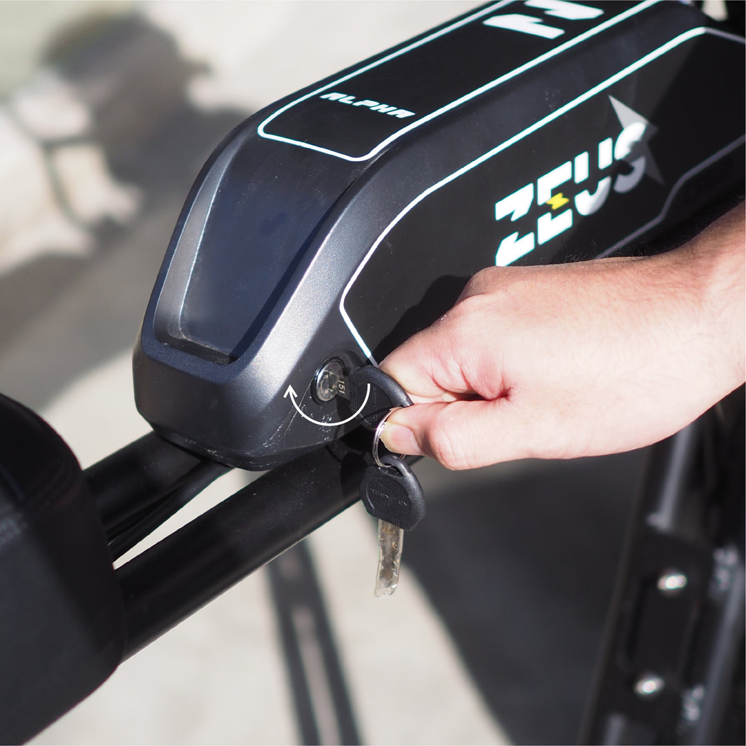 (Make sure to lock the battery and remove the key before riding)