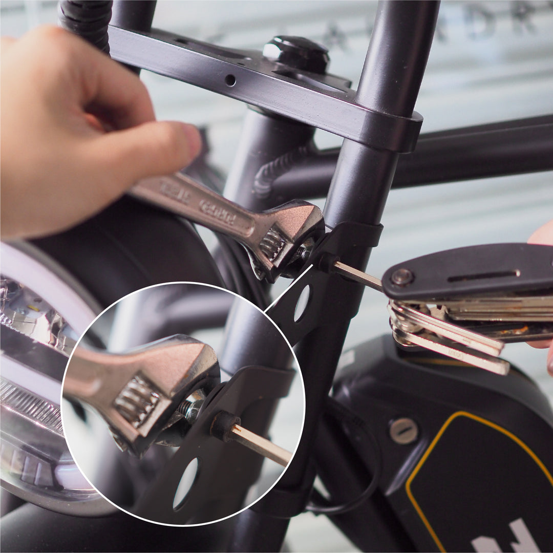 Tighten the handlebar clamp making sure the clamp is tightly secured, and handlebars do not move.