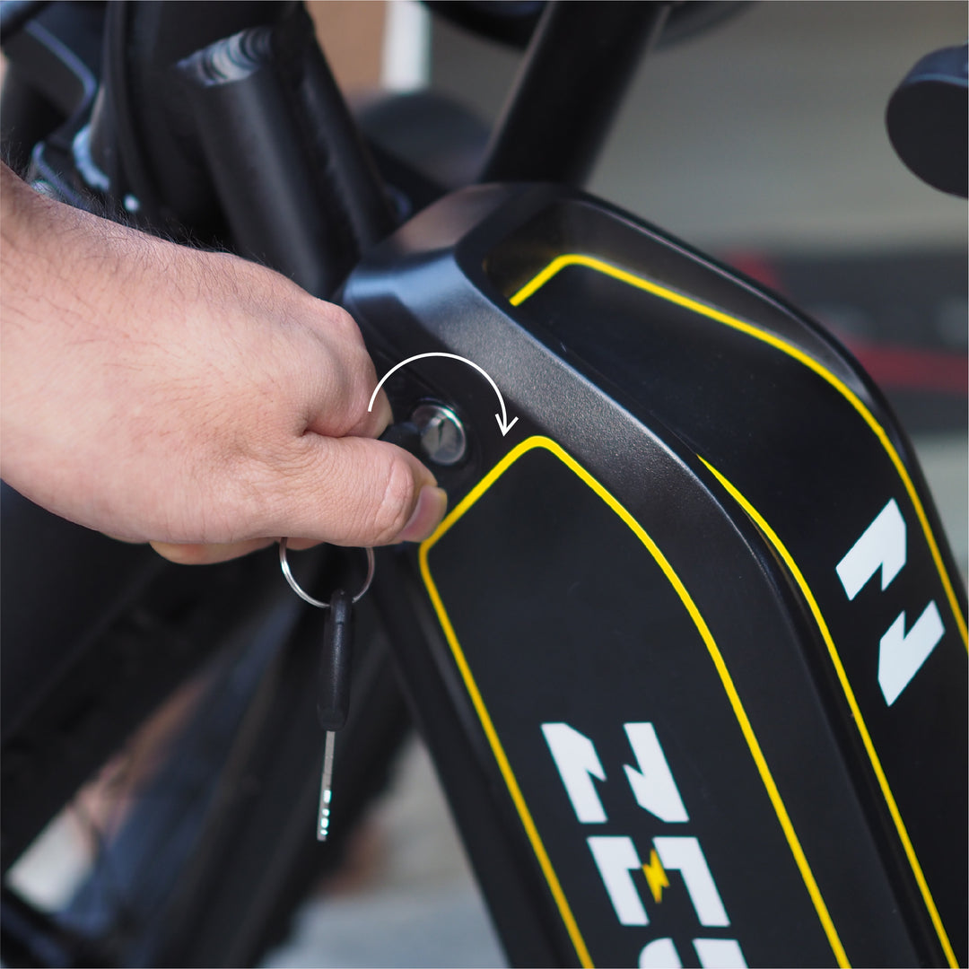 (Make sure to lock the battery and remove the key before riding)